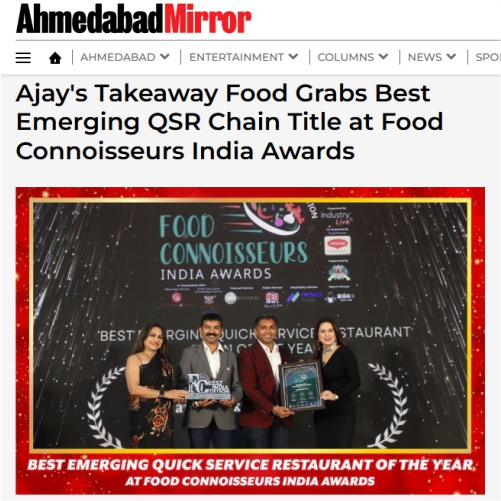 Ajay's Takeaway Food Grabs Best Emerging QSR Chain Title at Food Connoisseurs India Awards