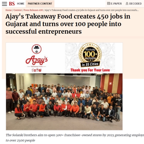 Ajay's Takeaway Food creates 450 jobs in Gujarat and turns over 100 people into successful entrepreneurs
