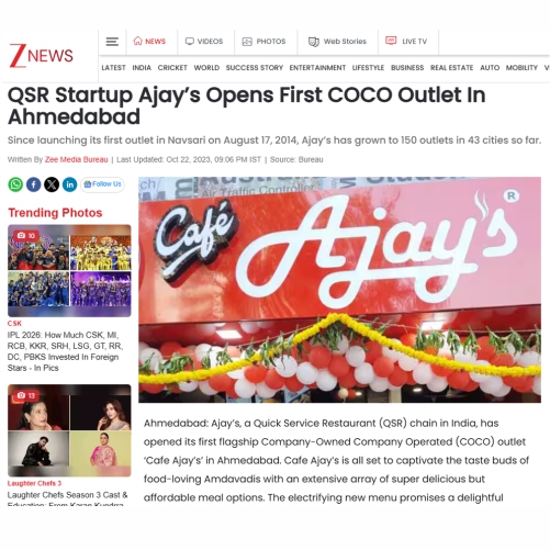 QSR Startup Ajay’s Opens First COCO Outlet In Ahmedabad